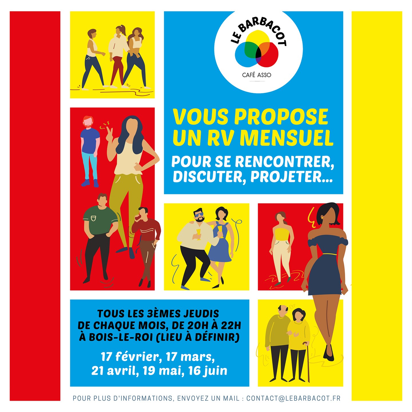 Le Barbacot, café associatif de Bois le Roi, propose désormais à ses adhérents une rencontre mensuelle, tous les 3eme jeudis du mois.