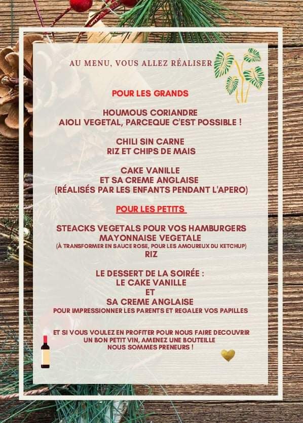 Alexandra partagera avec vous sa recette de chili SIN carne, accompagné d’un menu de fête ! 🎊