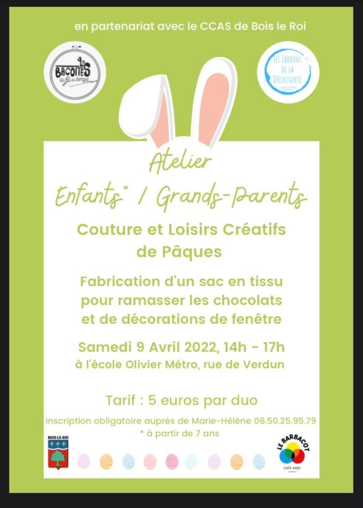 Venez avec un enfant (à partir de 7 ans), (même si ce n’est pas votre petit-enfant) et repartez avec un joli sac que vous aurez cousu ensemble, des décorations de fenêtre et de table