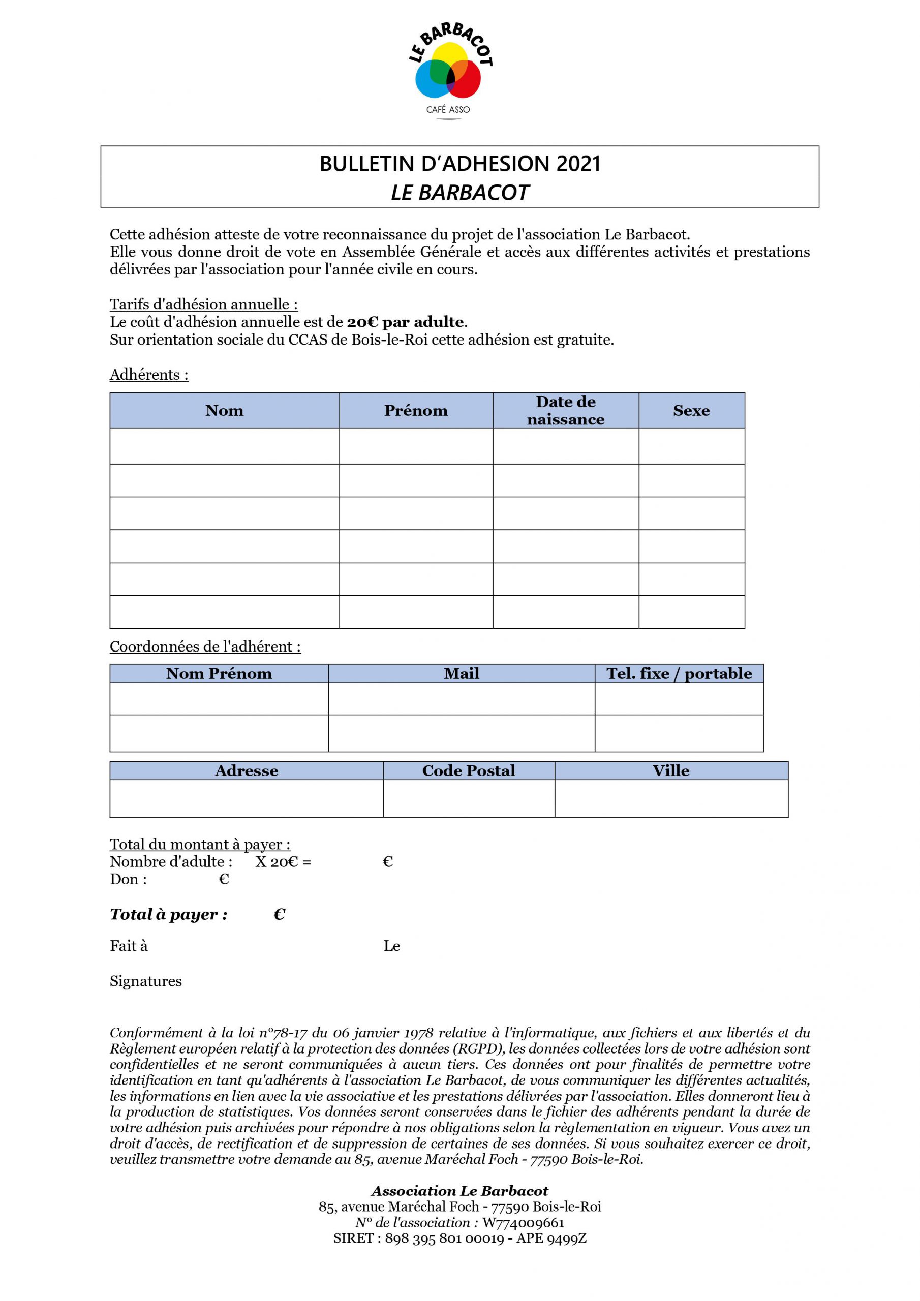 OU Envoyez/déposez le formulaire et le paiement à l’adresse suivante en réglant par chèque/espèce au même ordre :