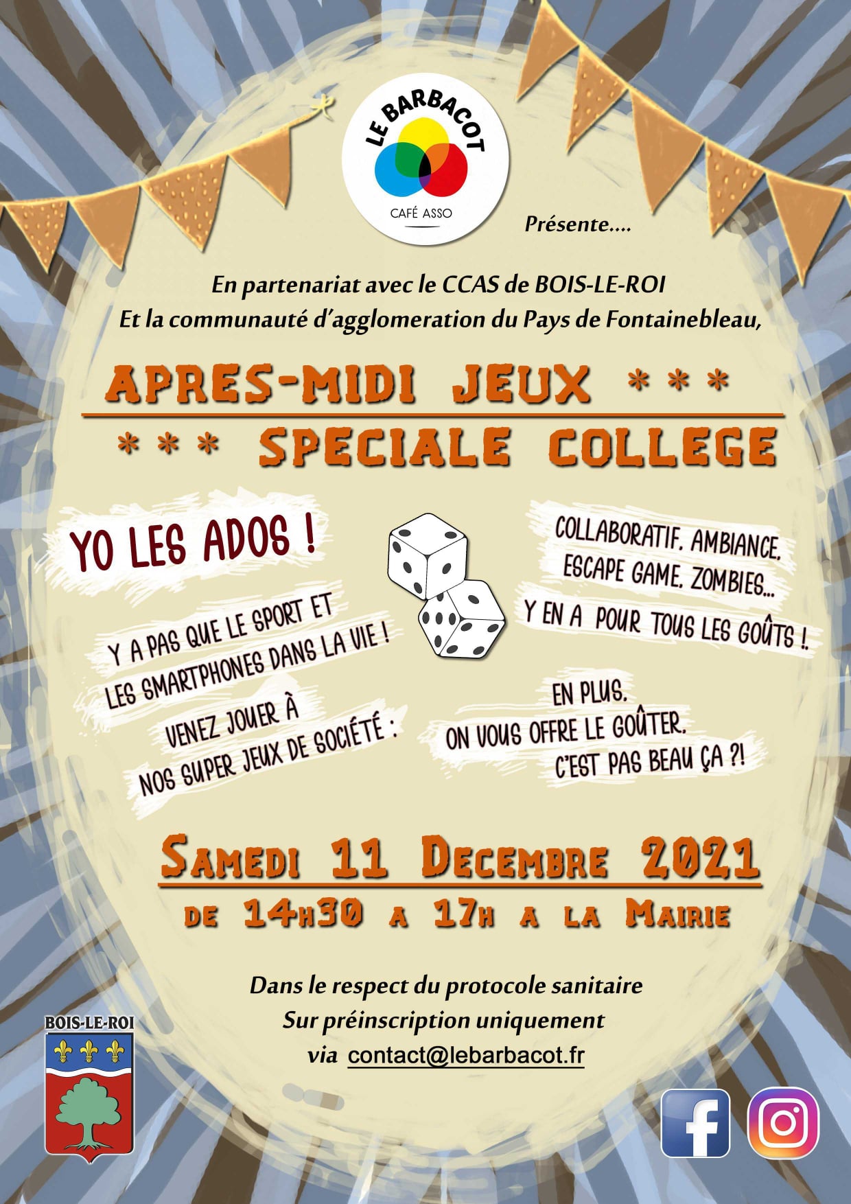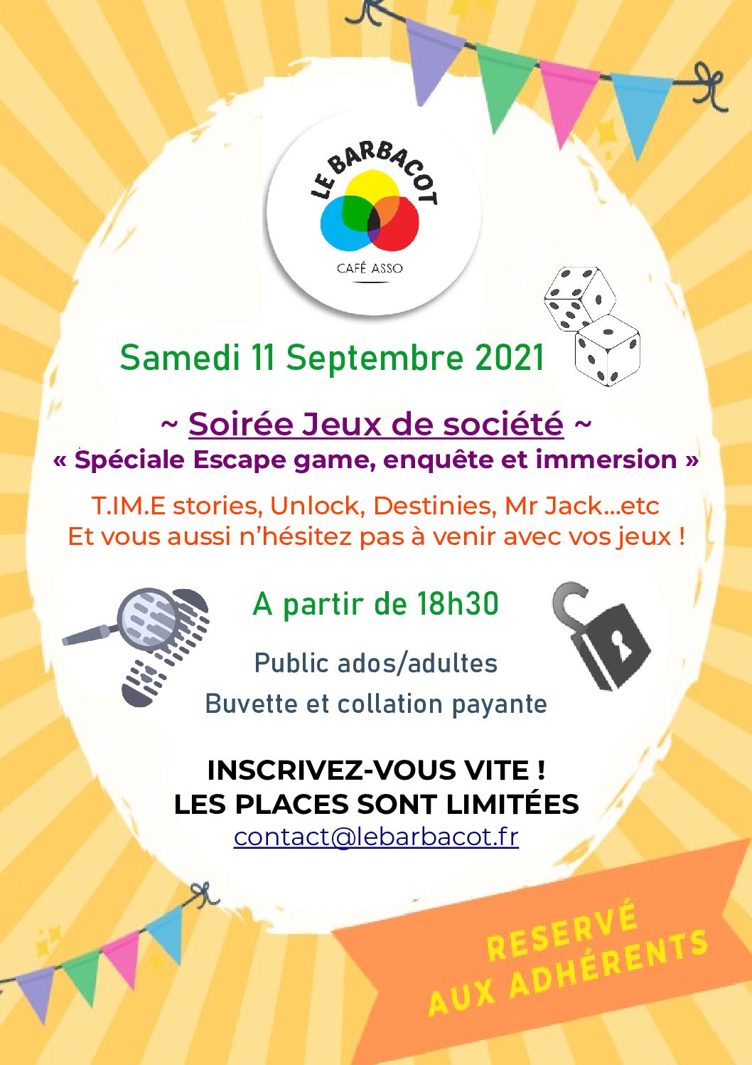 Collégiennes, Collegiens de #boisleroi et du #collègedenecourt RDV le samedi 11 décembre après-midi pour un après-midi jeux collaboratifs - escape game - jeux de plateaux de 14h30 à 17h Ouvert à tous sur inscription contact@lebarbacot.fr Et en plus, on vous prépare de quoi grignoter entre 2 parties... Pass sanitaire obligatoire, dans le respect du protocole...
