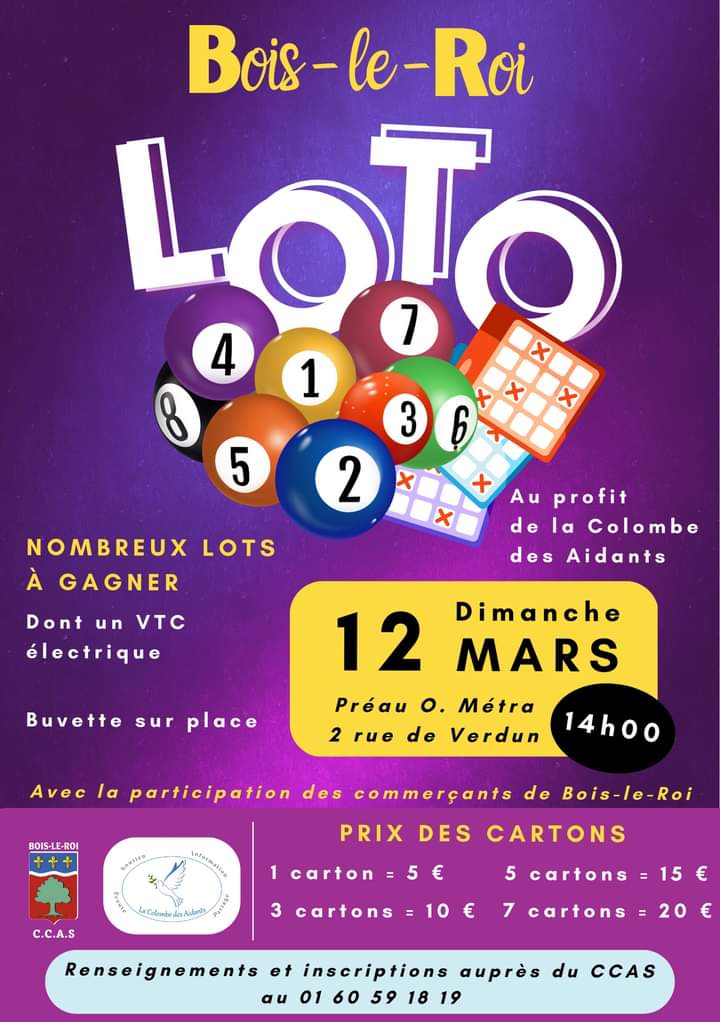 Le CCAS de Bois-le-Roi et @Les Bacottes au Fil du Temps organisent un Loto au profit de la Colombe aux Aidants